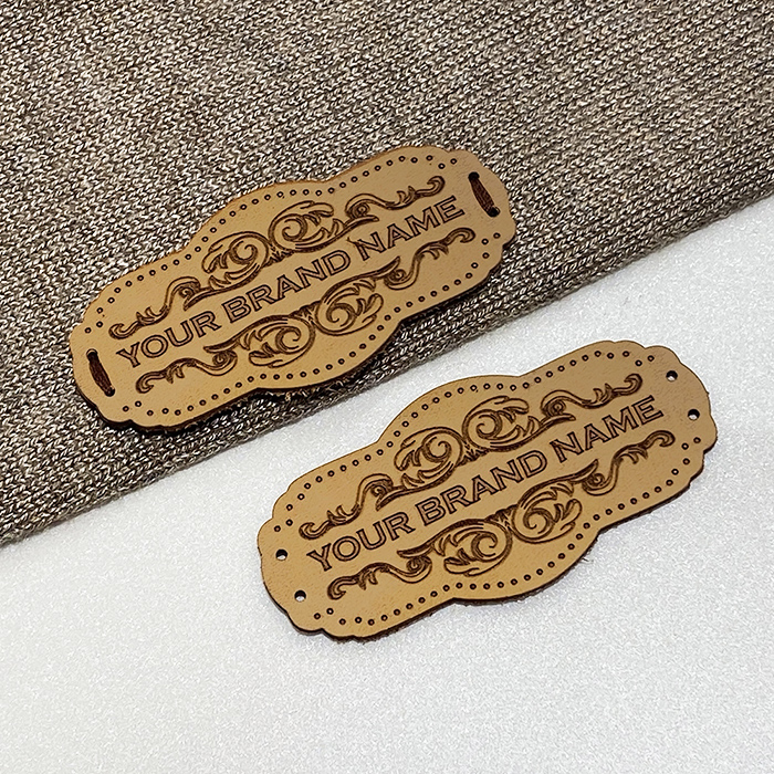 Natural leather label EP-M5 customized with logo or brand name suitable for various clothes, bags, shoes and other clothing accessories. This leather label model is made of high-quality genuine leather, using the latest generation equipment and professional laser engraving or embossing methods.