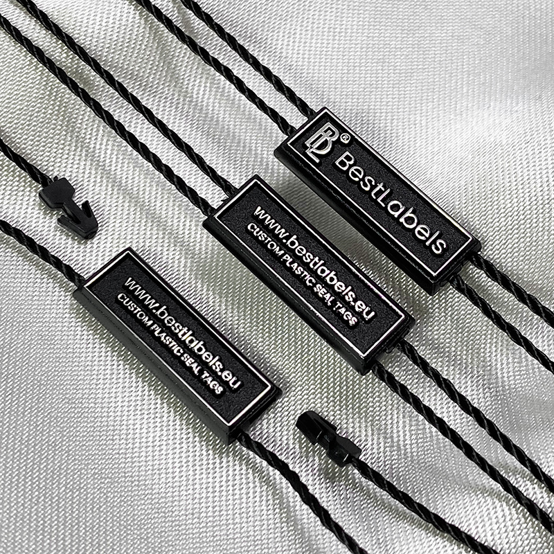 Custom plastic seal tag ST-M151 for fashion products, such as clothes, footwear, bags, jewelry, clothing accessories, etc.